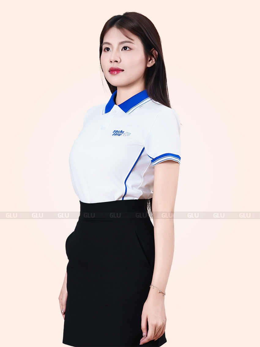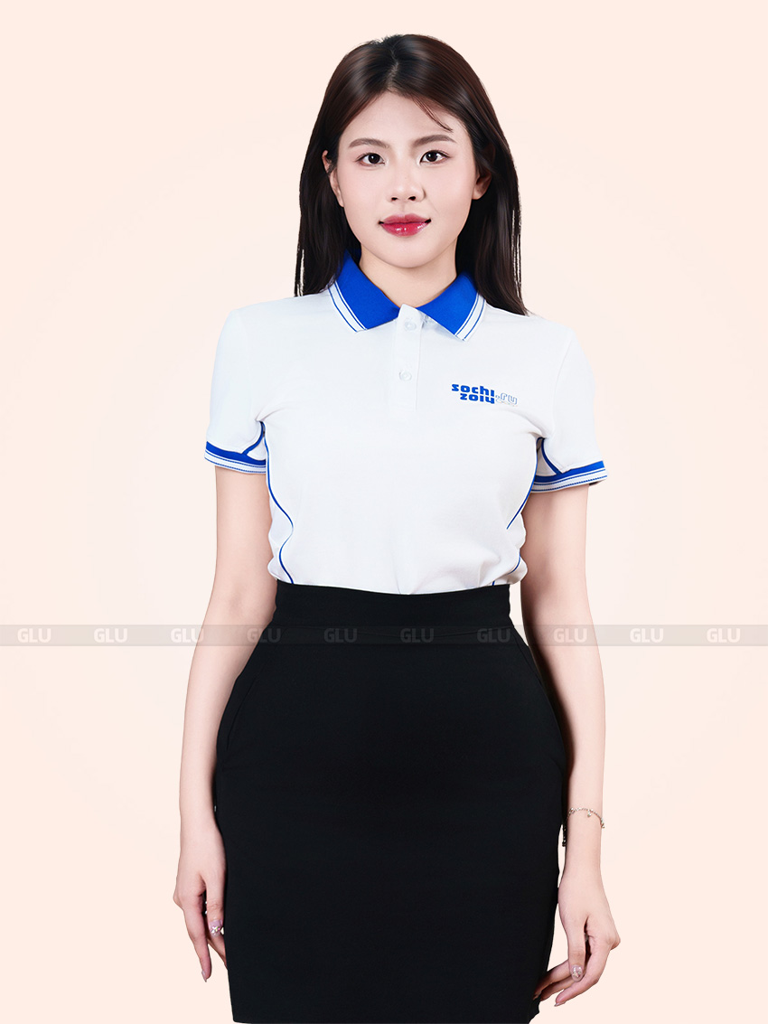 Mẫu áo polo trắng phối xanh dương trong hình là lựa chọn lý tưởng cho doanh nghiệp đang tìm kiếm sự tinh gọn nhưng vẫn chuyên nghiệp. Thiết kế nổi bật với đường bo viền cổ tay, cổ áo dệt sắc nét, tạo điểm nhấn mà không cần họa tiết phức tạp. Logo in pet rõ nét, lên màu chuẩn và bền màu theo thời gian, thích hợp cho môi trường công sở hay các hoạt động sự kiện. Chất liệu thun cá sấu 65/35 co giãn nhẹ, mềm mịn và thấm hút tốt, đảm bảo sự thoải mái cả ngày dài. Nếu bạn đang cần tìm cơ sở in áo đồng phục ở Gò Công, đây sẽ là gợi ý mẫu thiết kế vừa đẹp mắt, vừa thực tế để triển khai nhanh chóng với chi phí hợp lý.